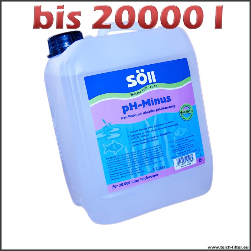 - Anwendung: Söll pH-Minus dosieren Sie direkt als flüssiges Pflegemittel in den Teich, messen Sie vorher und nachher unbedingt den ph-Wert mit einem Wassertester nach, der pH-Wert sollte so an die 8 bis 8,2 haben