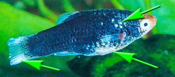 - um den Fisch zu behandeln, sollte er in ein Quarantänebecken gesetzt werden