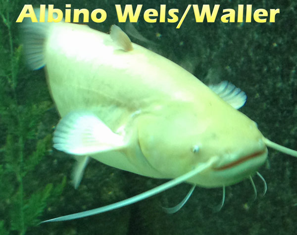 Ab und zu tritt der Waller auch als Albino Wels auf. Das erkennt man sogleich an der weissen Hautfarbe. Diese Albinowelse werden übrigens immer wieder durch Zufall gefangen.